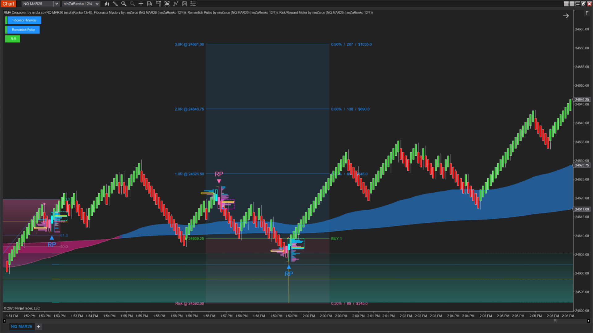 Romantick Pulse analyzes liquidity behavior and order flow activity to identify potential entry signals.