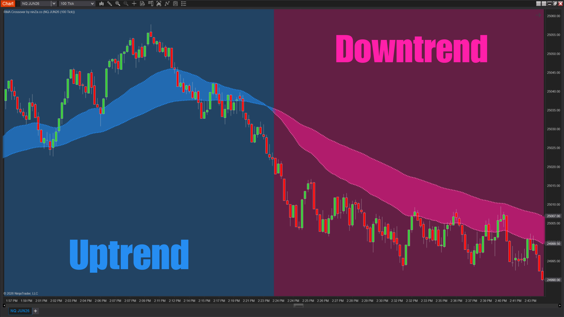 The RMA Crossover indicator defines the dominant market trend.