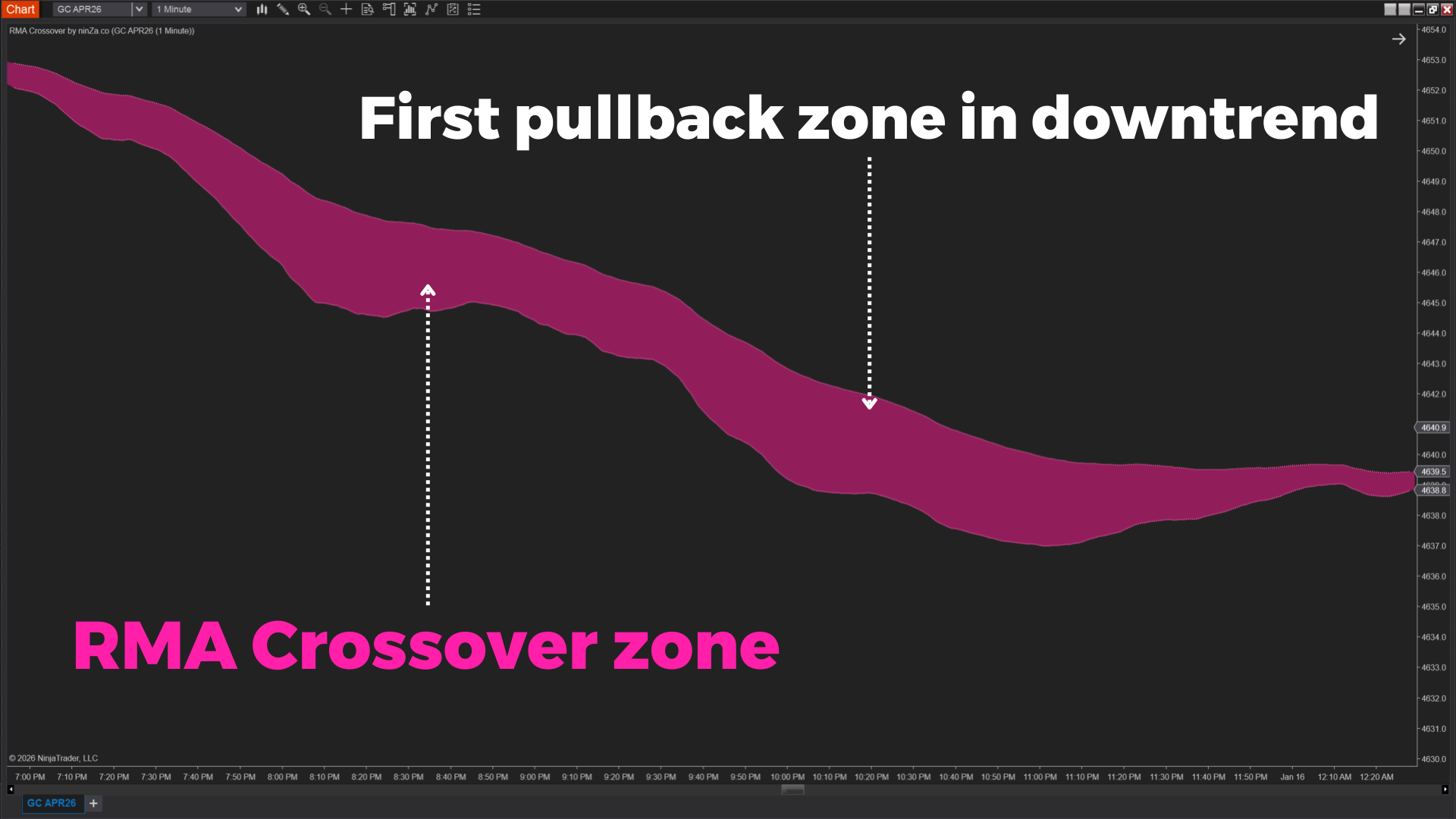 The RMA Crossover provides a smoother representation of the dominant trend, helping you distinguish between normal pullbacks within a trend and actual trend reversals.