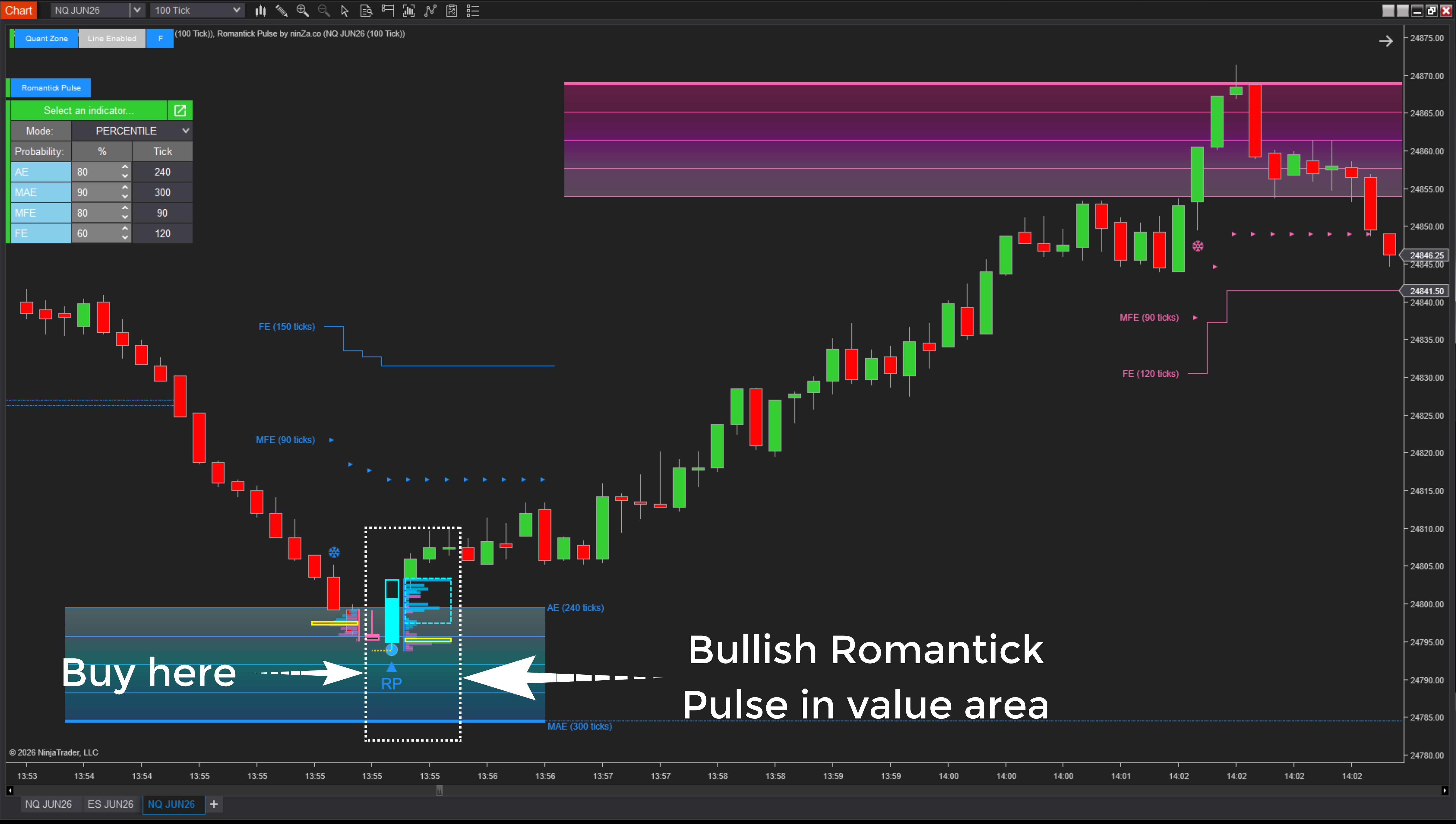Know where the edge exists (QuantZone)… and when to act on it (Romantick Pulse) – in real time, inside a single chart.